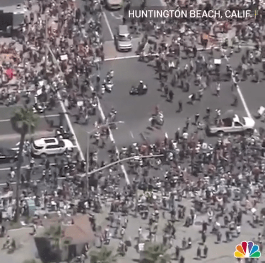 Thousands in Huntington Beach here’s a sample. Very peaceful very patriot. pic.twitter.com/i31UMtu2Om