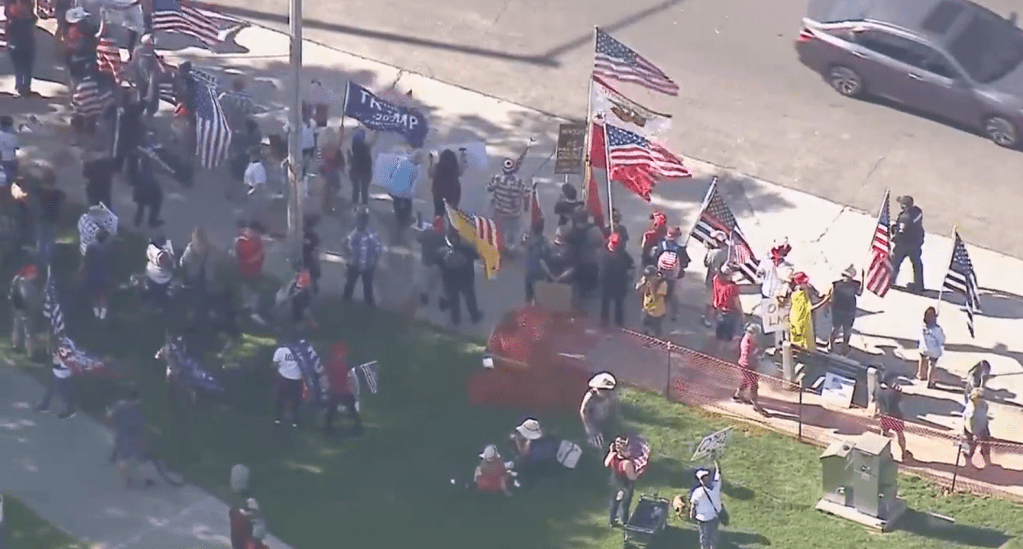 Passed these protestors in Laguna Beach today calling Gov. Newsom a terrorist and a charming sign: “F*ck Newssolini” pic.twitter.com/G1MoVT5b7N