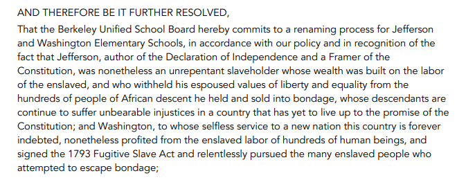 The Berkeley Unified School District board unanimously approved a “Resolution in Support of Black Lives Matter” during a meeting last week, the San Francisco Chronicle reported Monday. The move started the process of of renaming Jefferson and Washington elementary schools.